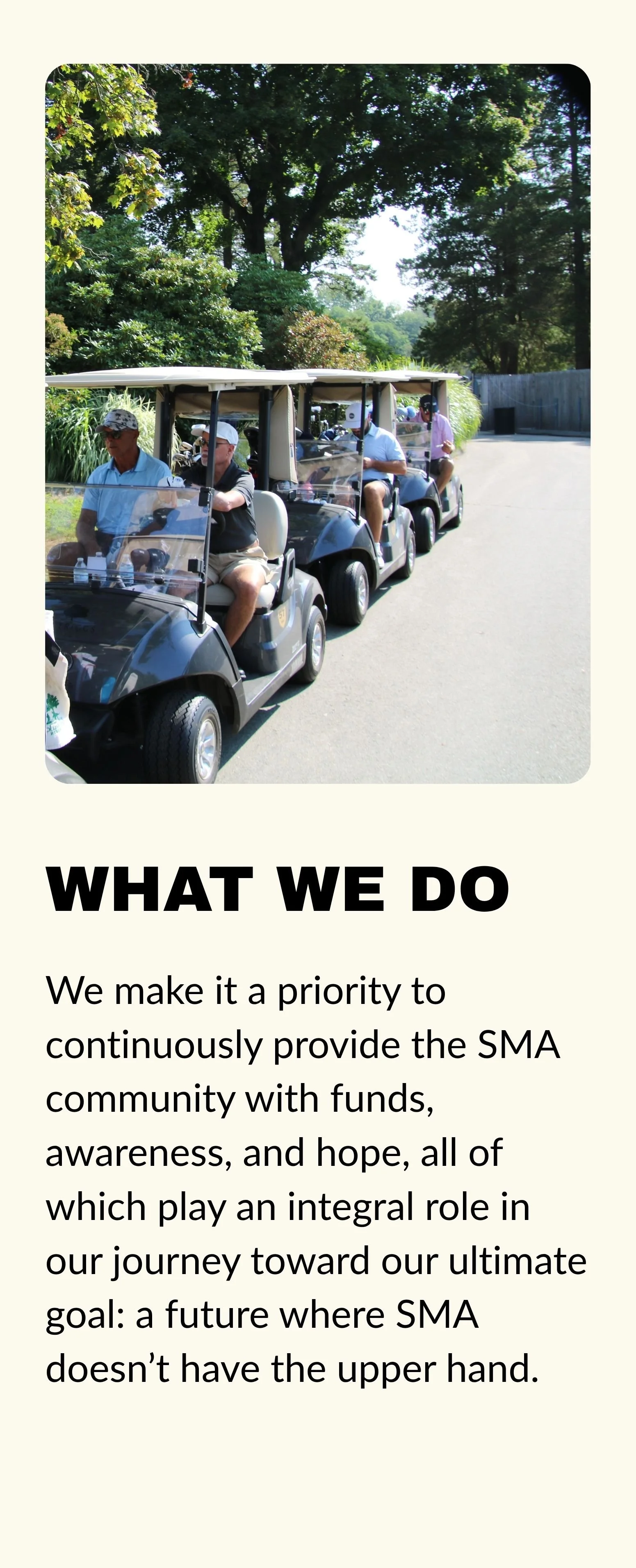 So we've set out to raise funds to accelerate access to promising treatments and support the research that brings us closer to a better future where SMA no longer has the upper hand.