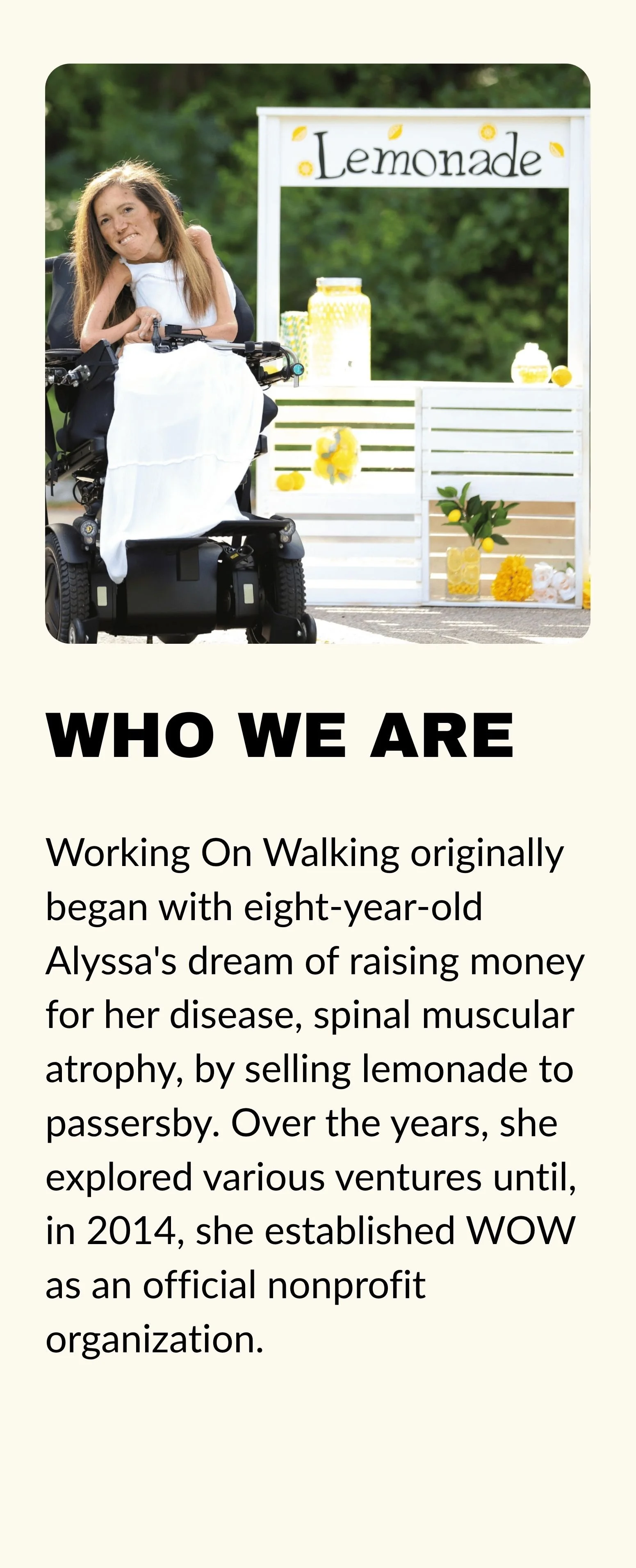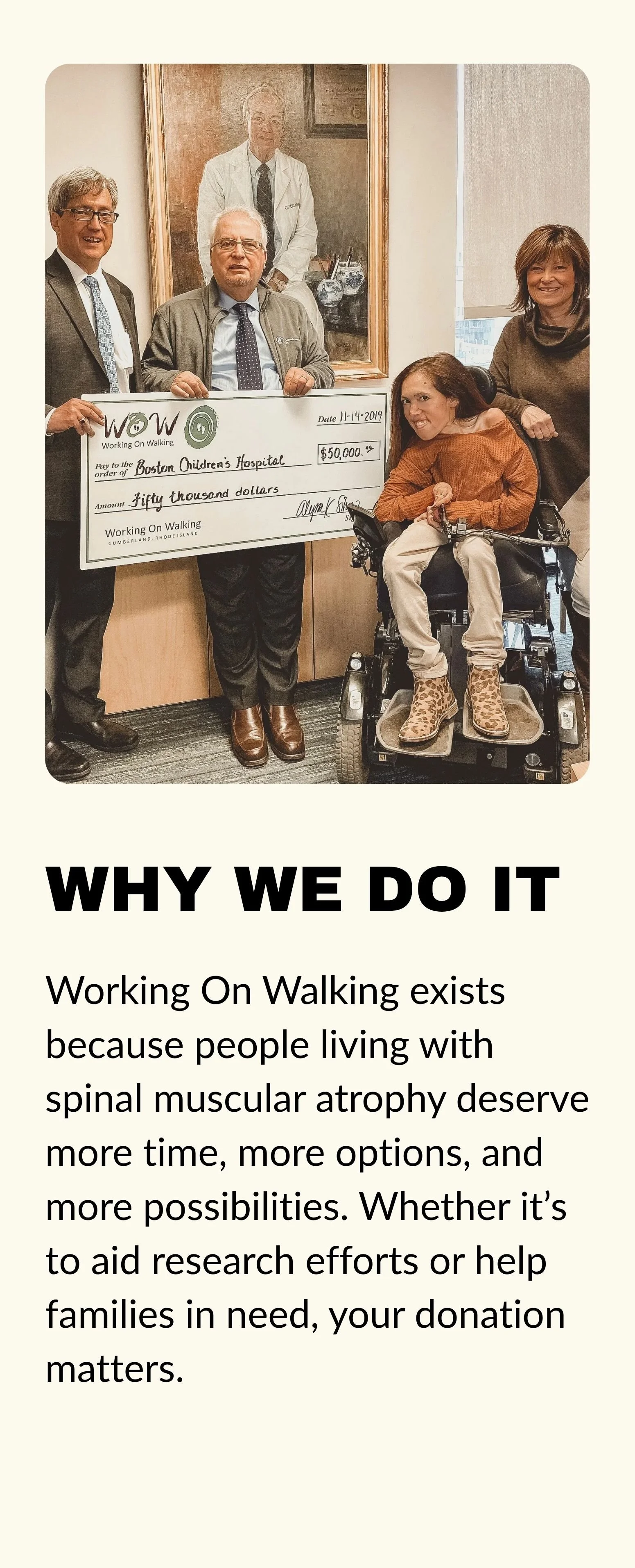 At Working On Walking, we are driven by one belief: the future of spinal muscular atrophy is still being written.